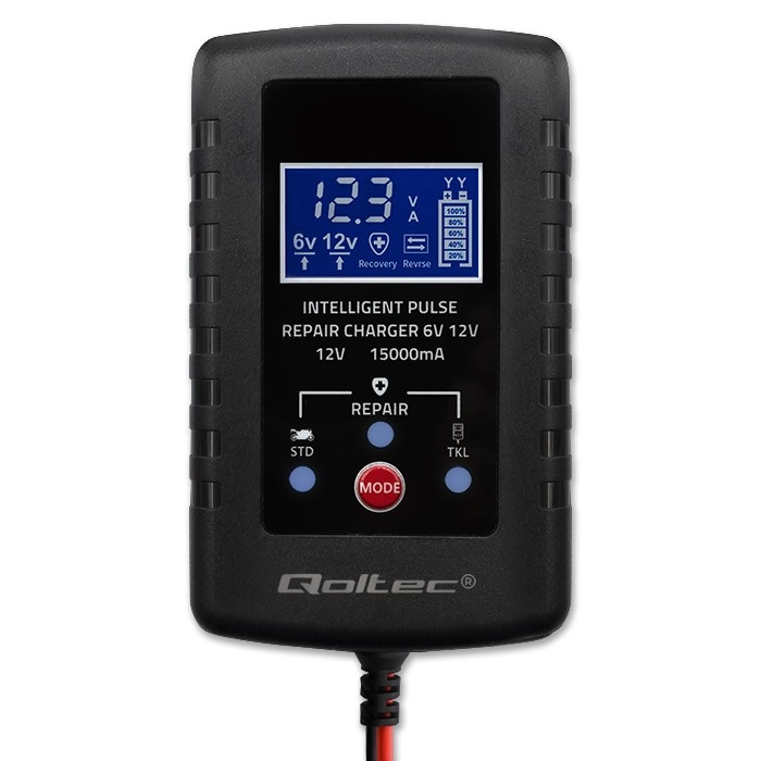De oplader is voorzien van een beveiligingssysteem en automatische controle van het laadproces, dat u continu informeert over de status zonder onderbreking. Dankzij automatische bescherming tegen overspanning en overladen hoeft u niet bang te zijn voor beschadiging van de accu.