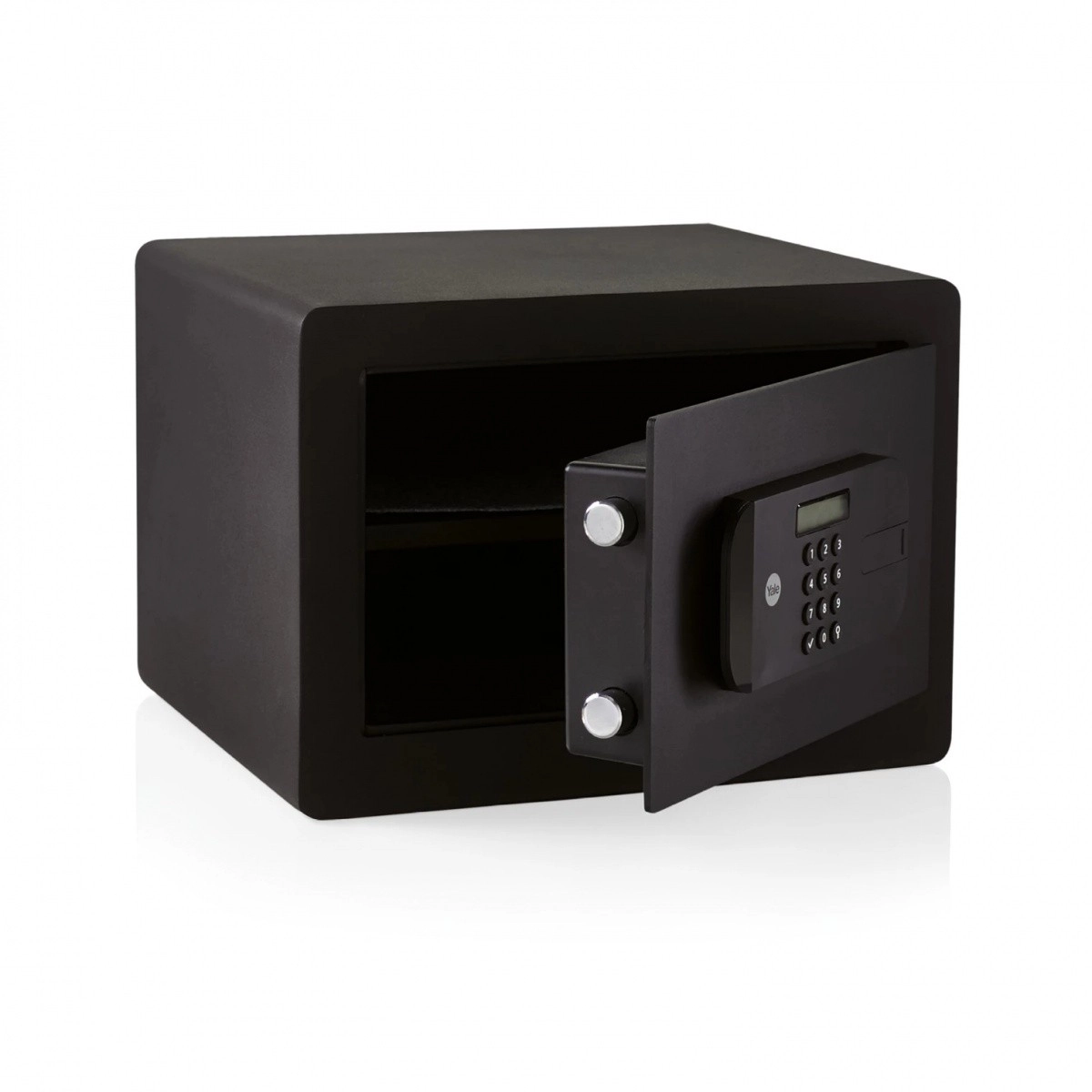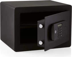 Compacte kluis met een hoog beveiligingsniveau beschermt uw kostbaarheden dankzij een pincode en laser-gesneden deur, die bescherming biedt tegen aanvallen.