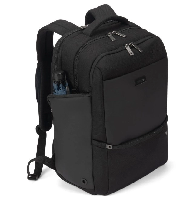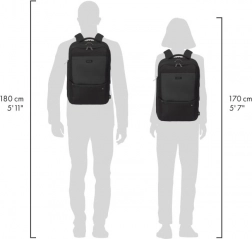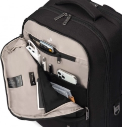 De beschermende laptopcompartiment met een V-vormige centrale steun zorgt ervoor dat het apparaat veilig op zijn plaats blijft en optimaal gepositioneerd is. Het voorvak met geordende zakken houdt accessoires en essentials netjes op hun plek, terwijl de ergonomische, ademende rugzijde de hele dag comfort biedt.