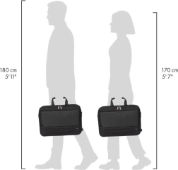 Top Traveller FIVE biedt een vergrendelbaar laptopvak met DCT Notebook Protection, HDF-schuim en een EVA-voering voor maximale veiligheid. Het geïntegreerde tabletvak maakt het mogelijk om apparaten tot 12,9 inch veilig op te bergen. Het hoofdvak biedt voldoende ruimte voor documenten, mappen of mobiele apparaten, terwijl de voorzijde georganiseerde vakken voor accessoires heeft. Een klein voorvak biedt extra opbergruimte voor kabels en kleinere items. De tas is gemaakt van 26,5 gerecyclede PET-flessen en draagt zo bij aan de bescherming van het milieu.