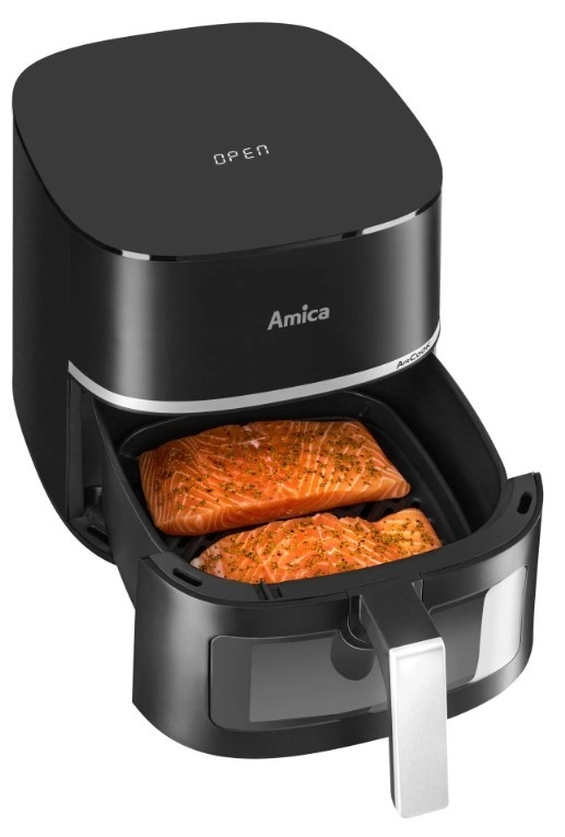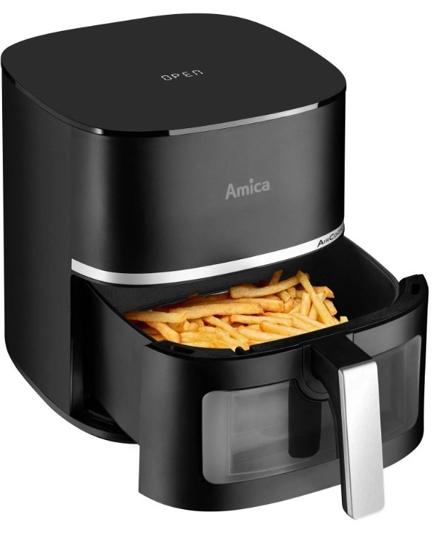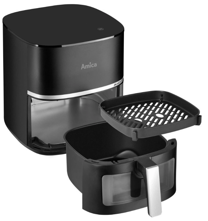 Geniet van knapperige, perfect bereide gerechten met de Amica heteluchtfriteuse, die gebruikmaakt van circulerende hete lucht voor uitstekende resultaten zonder olie. De friteuse is uitgerust met: