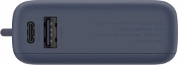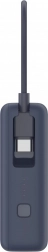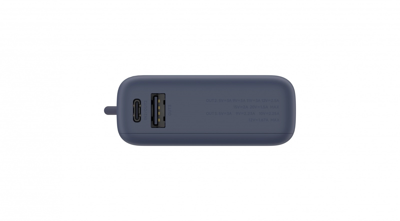 De powerbank heeft drie uitgangen: een USB‑C-poort, een ingebouwde USB‑C-kabel en een USB‑A-poort. Zo kun je tot drie apparaten tegelijk opladen zonder vermogensverlies. De geïntegreerde kabel verhoogt het gemak en elimineert de noodzaak om extra kabels mee te nemen.