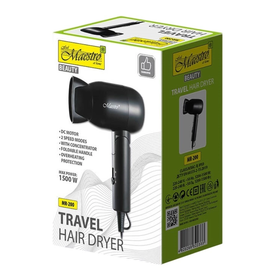 Als je op zoek bent naar een praktische, betrouwbare en compacte reisföhn, dan is de Maestro MR-200 een uitstekende keuze!