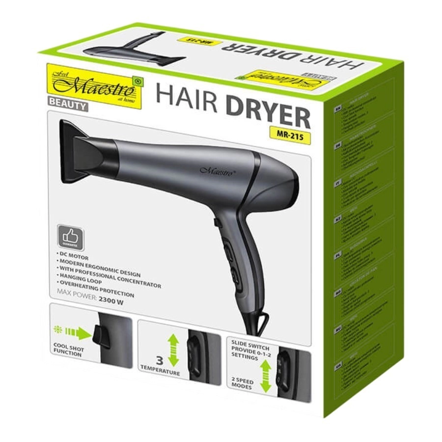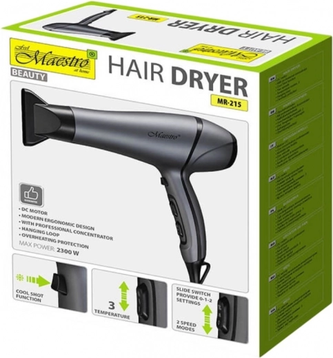De föhn is uitgerust met een duurzame DC-motor, die een lange levensduur en stabiele werking garandeert. Er is een concentrator inbegrepen, waarmee je de luchtstroom nauwkeurig kunt richten en precieze styling wordt vergemakkelijkt.