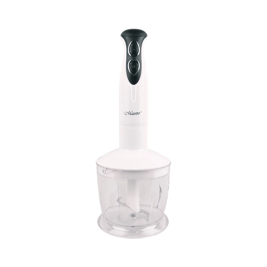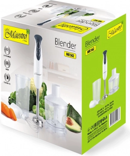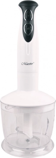 Blender set 3-in-1 Maestro biedt een vermogen van 300 W en is ontworpen voor eenvoudig en efficiënt mixen. Met twee snelheidsniveaus en een Turbo-functie kan hij verschillende ingrediënten aan.