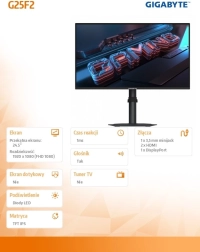 De Gigabyte G25F2-monitor is ontworpen voor gamers die hoge prestaties en nauwkeurige kleurweergave vereisen. Dankzij het IPS-paneel biedt het brede kijkhoeken en levendige kleuren.