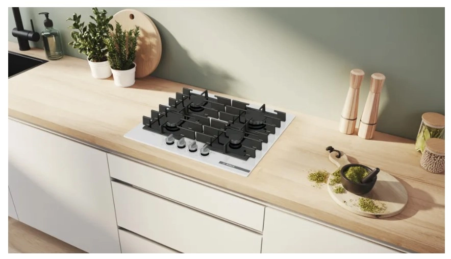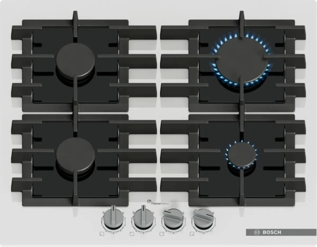 Volledige controle over de gaskookplaat. Met de Bosch FlameSelect kookplaat kun je de vlamintensiteit eenvoudig en nauwkeurig regelen, wat perfecte kookresultaten garandeert. Er zijn negen vlamniveaus beschikbaar, ideaal voor bakken, stoven en koken.