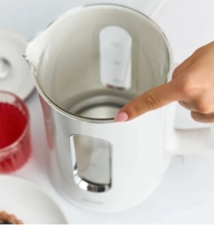 Het niet-oververhittende buitenoppervlak van de waterkoker garandeert veilig gebruik en de originele Britse STRIX-schakelaar biedt langere levensduur, zelfs bij frequent kort koken.