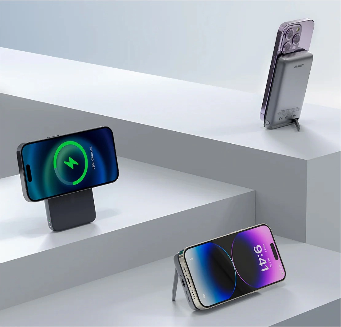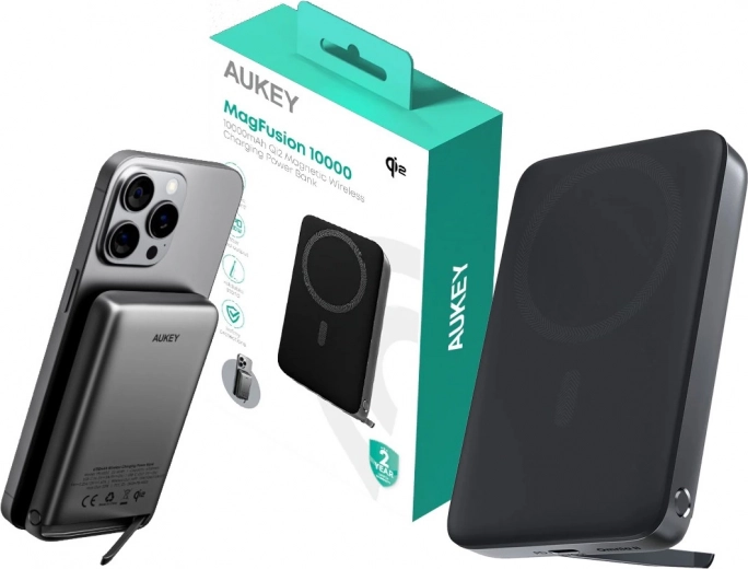 Met de draagbare en compacte AUKEY MagFusion powerbank met een capaciteit van 10000mAh hoef je je nooit meer zorgen te maken dat je telefoon leeg raakt. De MagSafe-technologie zorgt voor een sterke magnetische verbinding met iPhones vanaf model 12, waardoor draadloos opladen en ononderbroken gebruik de hele dag mogelijk is.