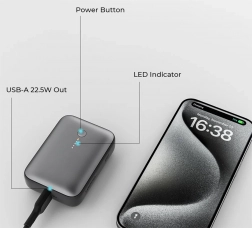 Maximale veelzijdigheid: USB‑C Power Delivery maakt het mogelijk niet alleen smartphones, maar ook grotere apparaten zoals laptops op te laden. De LED-vermogenindicator maakt het eenvoudig om het batterijniveau te controleren.