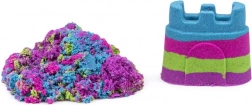 De Mini Regenboogkasteel-variant bevat 140 g zand in vier kleuren (blauw, groen, paars, roze). De beker in de vorm van een kasteel dient als bouwvorm en als praktische opbergoplossing – na het spelen berg je het zand eenvoudig binnenin op en het is klaar voor nieuw creëren.