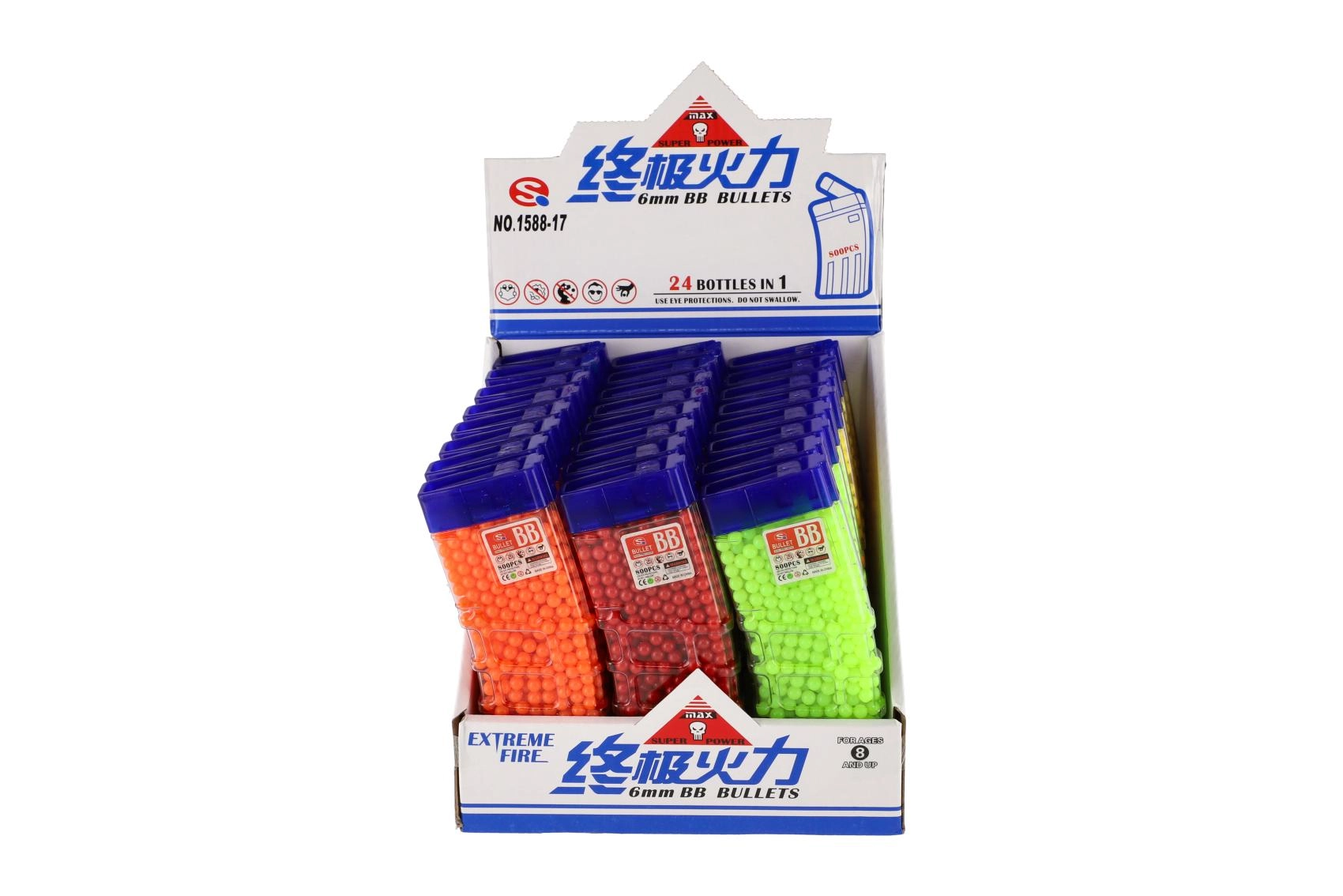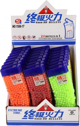 Deze universele set 6 mm balletjes biedt genoeg munitie voor lange speelsessies. De kleurvarianten (geel, blauw, groen, rood, oranje enz.) verhogen het overzicht en het speelplezier. De transparante plastic pot met praktische schenktuit vergemakkelijkt het vullen van kinderspeelgoed en beschermt de inhoud tegen morsen.