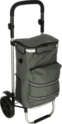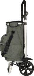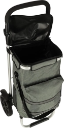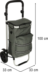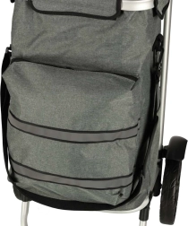 Praktische boodschappentas op wieltjes met een frame van 100 cm in elegante grijze kleur, met een inhoud van 40 l, een thermovak voor gekoelde etenswaren en waterafstotend materiaal. Dankzij de grote wielen, ergonomische handgreep en reflecterende elementen zorgt hij het hele jaar door voor comfortabel en veilig vervoer van boodschappen en bagage.