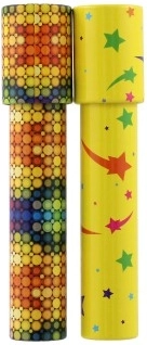 Elke caleidoscoop heeft een vrolijke print en levendige kleuren. We leveren een willekeurig motief afhankelijk van de actuele voorraad.