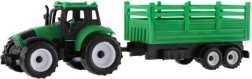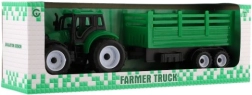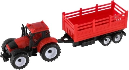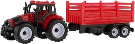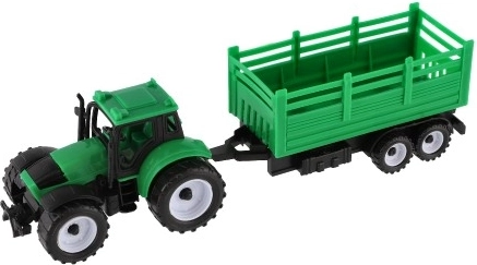 De tractor met aanhanger is een getrouwe kopie van echte landbouwmachines en zal elke kleine boer blij maken.