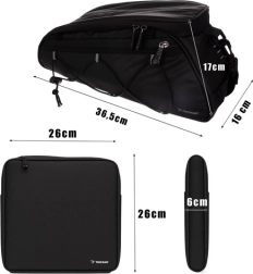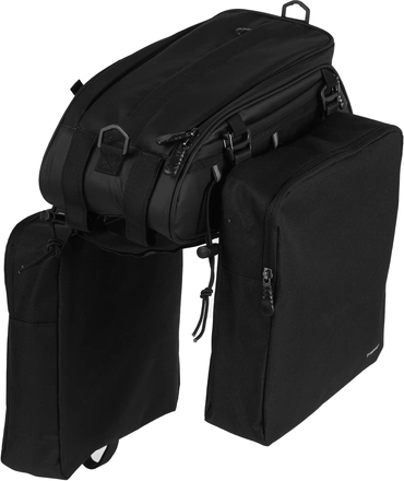 Gemaakt van waterdicht polyester zijn deze tassen bestand tegen regen en vocht, zodat je spullen bij elk weer beschermd zijn. De set bestaat uit één centrale tas en twee zijtassen die eenvoudig kunnen worden verwijderd en als schoudertas kunnen worden gedragen.