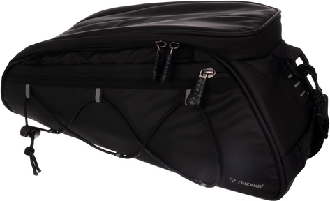 De veilige bevestiging aan de bagagedrager wordt gerealiseerd met klittenband en karabiners, waardoor een stabiele, gekoppelde constructie ontstaat. Extra reflecterende elementen verhogen de zichtbaarheid tijdens nachtelijke ritten en garanderen zo je veiligheid.