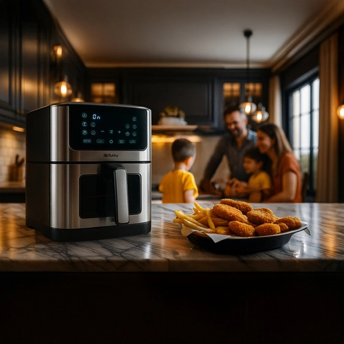 De Ruhhy friteuse biedt veilig frituren zonder olie, waardoor je favoriete gerechten gezonder kunt bereiden zonder aan smaak in te boeten. Het anti-aanbakoppervlak maakt schoonmaken eenvoudig en het moderne design past perfect in je keuken.