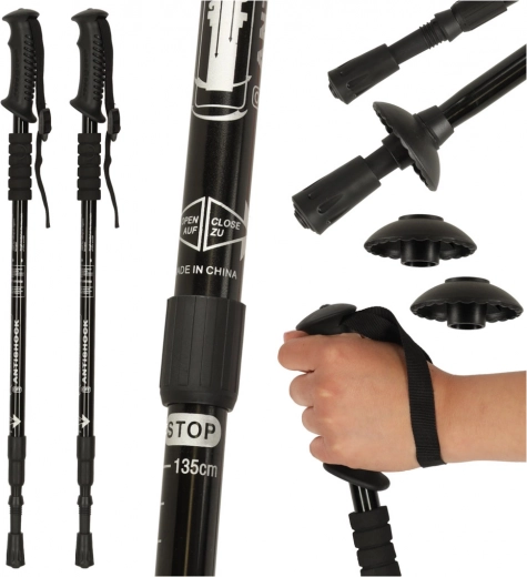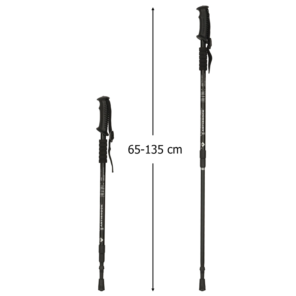 De stokken hebben een verstelbare lengte van 65 tot 135 cm, waardoor ze ideaal zijn voor verschillende terreinomstandigheden.