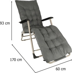 De grijze inklapbare tuinligstoel met comfortabel kussen is de ideale keuze voor ontspanning in de tuin of op het terras. De zeer duurzame constructie en het opvouwbare ontwerp zorgen voor eenvoudige handling en opslag.
