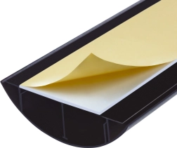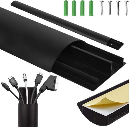 De lijst bestaat uit twee delen: een montagebasis en een afdekkap. Gemakkelijke toegang voor het vervangen of onderhouden van kabels is gewaarborgd. U kunt de installatie uitvoeren met een zelfklevende tape op gladde oppervlakken, of pluggen en schroeven gebruiken voor extra stabiliteit.