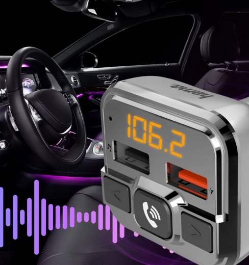 De FM‑transmitter verzendt het audiosignaal draadloos vanaf een Bluetooth‑apparaat rechtstreeks naar de autoradio. Verbind je smartphone of tablet en luister naar je favoriete muziek zonder kabels.