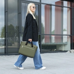 Met doordachte details biedt de tas een brede, tweewegsrits voor gemakkelijk inpakken en snelle toegang tot de inhoud. Magnetische ritsuiteinden met een elegante, lederlook accenten zorgen voor esthetiek en orde in één. De gevoerde schouderriem is verstelbaar en afneembaar voor maximaal comfort, en voor dagelijks gebruik zijn er beklede handgrepen die duurzaam en comfortabel zijn.