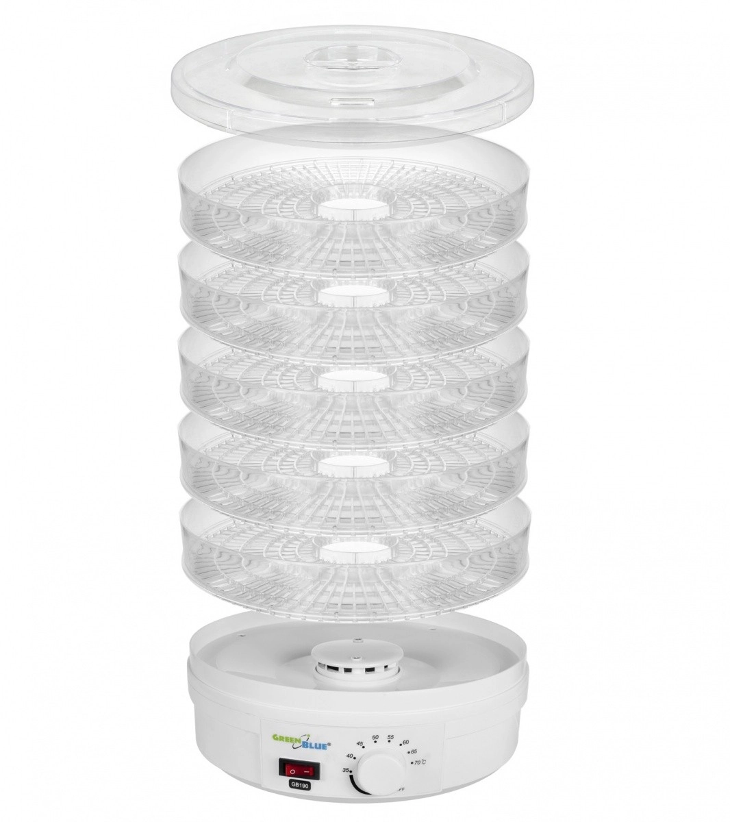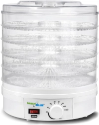 Met de GreenBlue droogmachine maak je eenvoudig gezonde en smakelijke voorraden gedroogde paddenstoelen, groenten en fruit voor de winter. Met een vermogen van 250 W en stille werking is hij ideaal voor drogen zonder conserveringsmiddelen.
