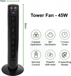 De moderne en stabiele constructie met een hoogte van 82 cm maakt het mogelijk om de ventilator zowel thuis als op kantoor te plaatsen zonder veel ruimte in beslag te nemen. Een brede basis zorgt voor stabiliteit van het apparaat.