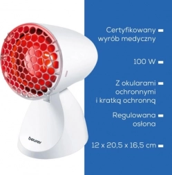 Met de infraroodlamp van Beurer krijgt u een kwalitatief apparaat voor thuiszorg en behandeling. De lamp is voorzien van een beschermrooster en levert een krachtige lichtoutput, waardoor hij geschikt is voor het verlichten van spierspanning of verkoudheid. Dankzij de mogelijkheid om de hoek in 5 verschillende posities in te stellen, biedt de lamp individueel en flexibel gebruik.