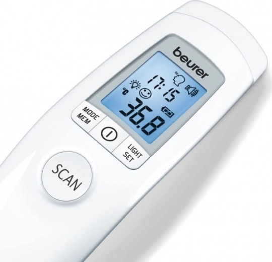 De medische thermometer FT90 van Beurer maakt contactloze meting mogelijk van de lichaamstemperatuur, maar ook van de omgevingstemperatuur en oppervlakken. De temperatuurwaarden zijn gemakkelijk af te lezen dankzij het verlichte XL-display. Voor extra gebruiksgemak worden de resultaten aangevuld met emoticons.