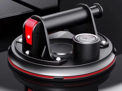 De plaat is onmisbaar op de bouwplaats bij het installeren van glas, tegels en andere panelen. Dankzij de intuïtieve bediening en het ontluchtingsventiel vergemakkelijkt hij het positioneren en beschermt hij het materiaal tegen beschadiging. De constructie is bovendien voorzien van een antisliphandgreep voor comfortabele hantering.