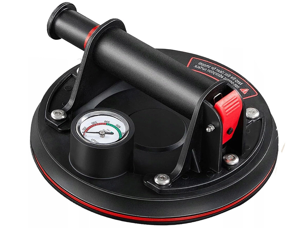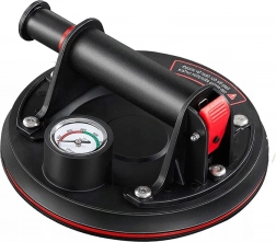 De vacuüm-zuigplaat is ontworpen voor horizontaal en verticaal werken met gladde oppervlakken. Hij is uitgerust met een manometer met kleurzones voor volledige controle over de veiligheid van de grip:
