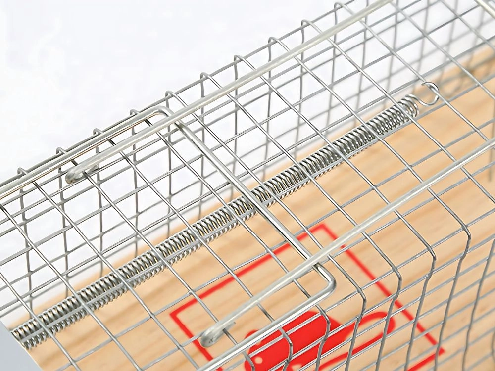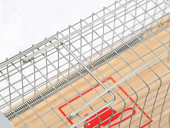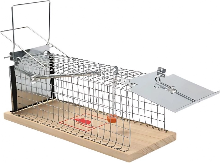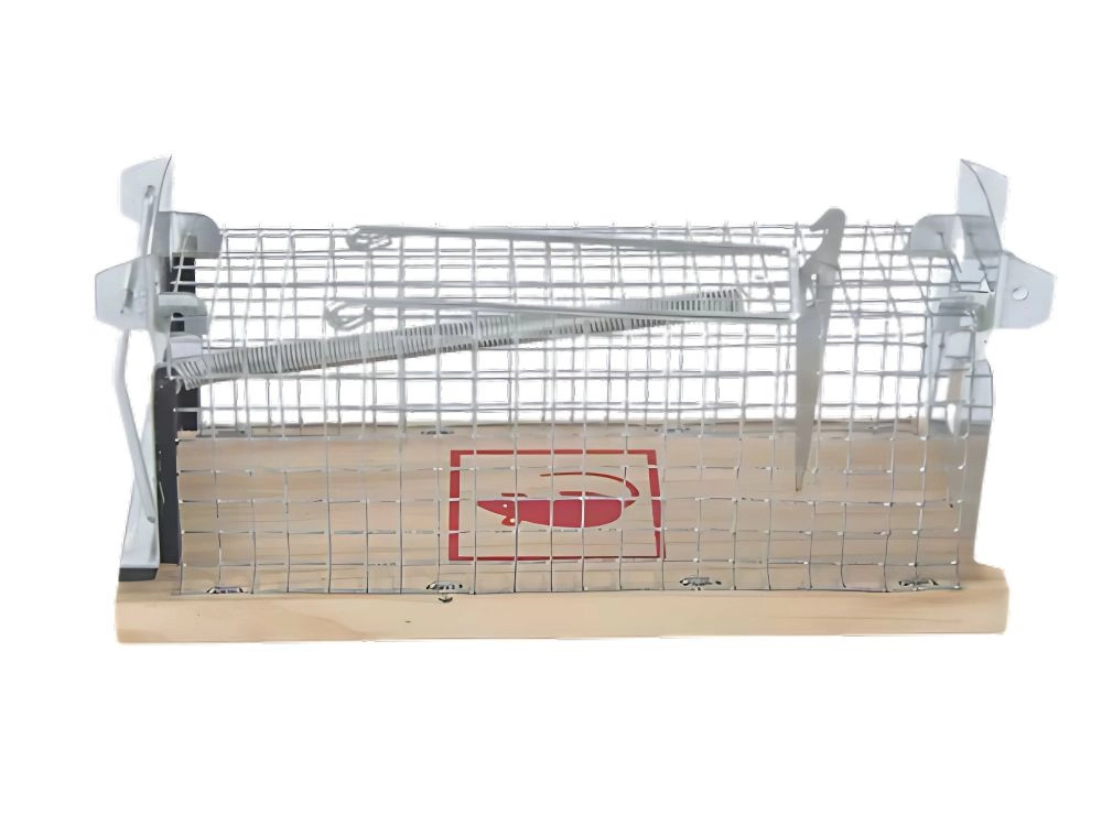 Deze metalen val is ontworpen voor het veilig en effectief vangen van kleine ongedierte zonder het gebruik van gifstoffen. Het is gemaakt van staaldraad en een houten basis, wat weerstand en veilige hantering biedt.