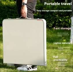 De opvouwbare constructie van de tafel en stoelen maakt het mogelijk om deze compact op te bergen als een handige koffer met handvat, wat het dragen en opslaan vergemakkelijkt. Vooral praktisch tijdens reizen, wanneer elke centimeter ruimte in de bagageruimte telt.