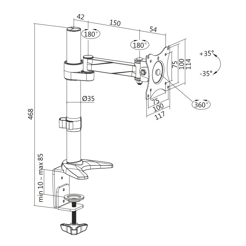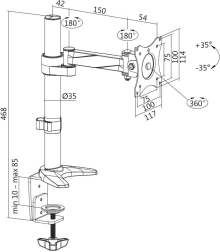 Onze verstelbare monitorarm is de ideale oplossing voor kantoor en thuis, waar ruimtebesparing en ergonomie belangrijk zijn. Hij wordt direct aan het bureaublad bevestigd en maakt het mogelijk zowel de hoogte als de kijkhoek van de monitor aan te passen.