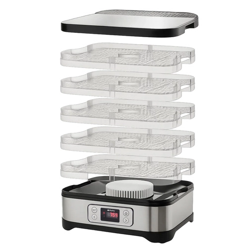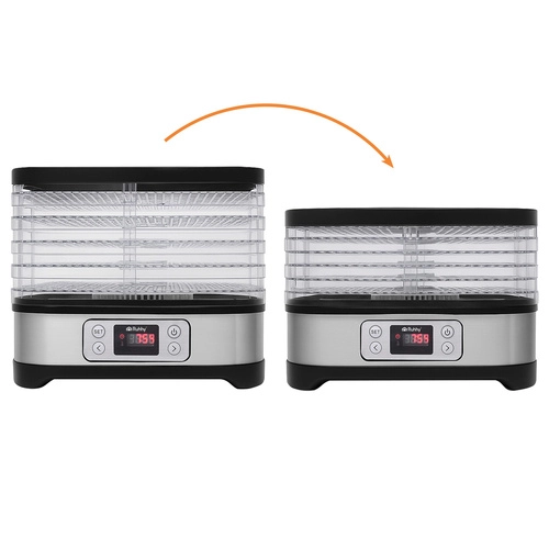 Capaciteit van 10 liter – 5 trays bieden voldoende ruimte om te drogen.