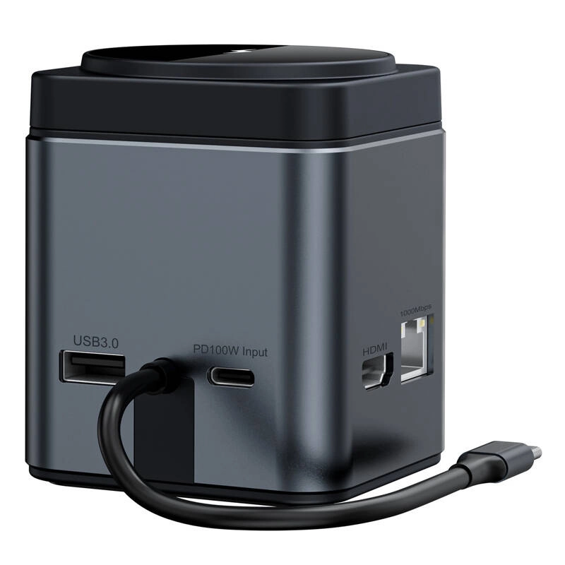 Draadloos opladen: Het station ondersteunt draadloos opladen met 15 W, geschikt voor moderne smartphones en andere accessoires.