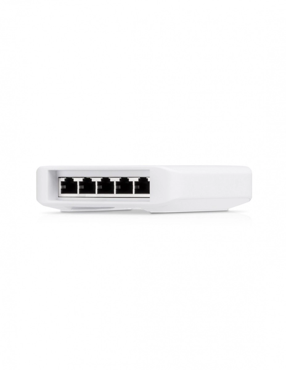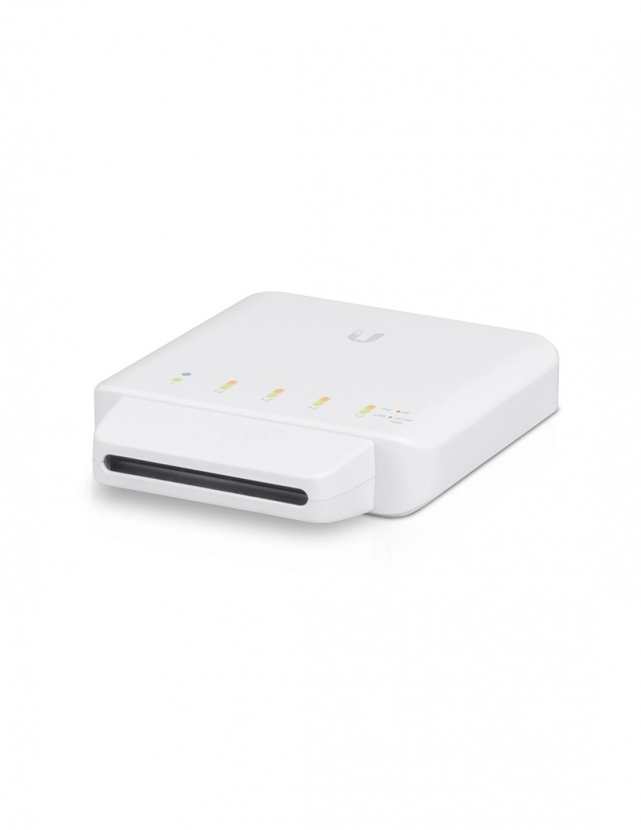 Ubiquiti UniFi Switch Flex is een gigabit beheerbare switch van laag 2 met automatische detectie van PoE 802.3af, met 5 gigabit 10/100/1000 Mb/s poorten, waaronder 4 PoE-poorten en 1 PoE++-poort.