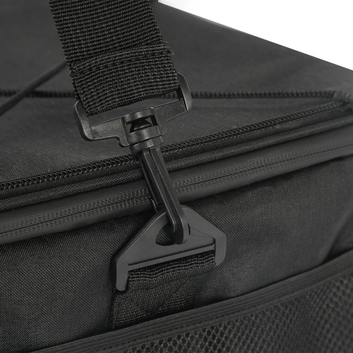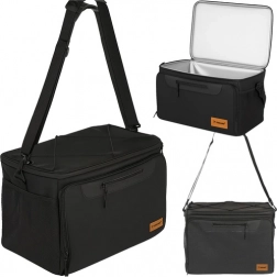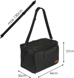 Technische specificaties omvatten afmetingen van 46 × 27 × 30 cm en een zwarte kleur. De buitenzijde is gemaakt van oxford‑stof, terwijl de binnenkant is voorzien van aluminiumfolie in combinatie met oxford‑stof.