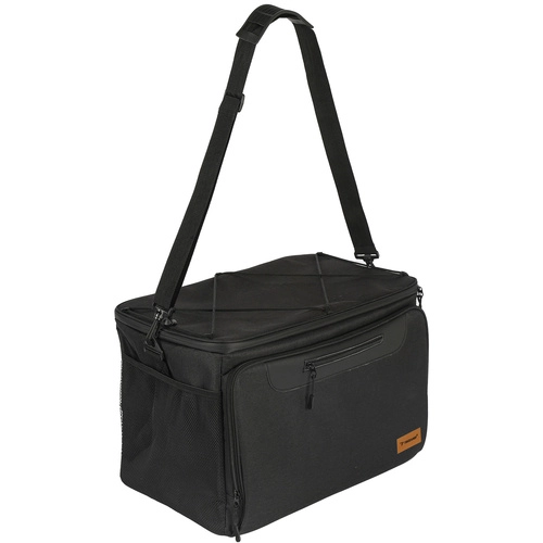 Voor het dragen is hij uitgerust met een comfortabele, verstelbare schouderriem met beschermend kussentje, wat comfort garandeert zelfs bij zwaardere belading. De tas is bovendien waterbestendig, waardoor je hem zonder zorgen op nat gras of zand kunt neerzetten.