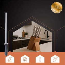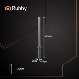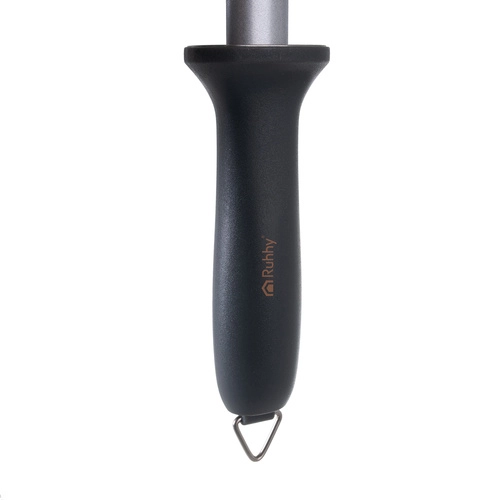 Het diamanten aanzetstaal RUHHY is een onmisbare hulp voor het regelmatig slijpen van messen en houdt je gereedschap in perfecte conditie. De ergonomische handgreep en de stalen staaf zorgen voor een comfortabel en duurzaam gebruik, ideaal voor zowel professionele als huishoudelijke keukens.