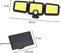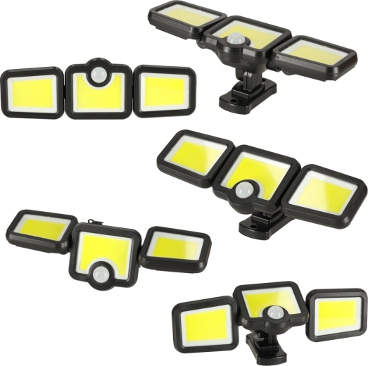 De 3-in-1 zonne-LED-schijnwerper combineert drie uitklapbare lichtpanelen met een gevoelige bewegingssensor en een schemersensor. Plaats het zonnepaneel op een zonnige plek en geniet van draadloze verlichting zonder bekabeling en zonder stroomkosten. Na opladen kan hij tot 10 uur branden.