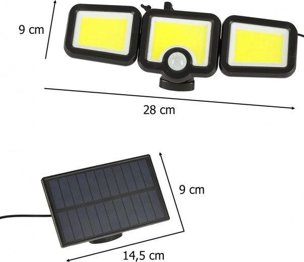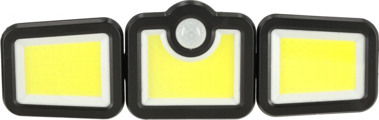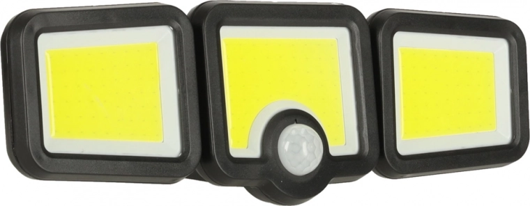 Krachtige buiten-zonne-LED-schijnwerper met drie verstelbare panelen, een losse zonnepaneelmodule en een geïntegreerde PIR-sensor. Biedt een brede lichtbundel tot 320°, automatisch inschakelen bij schemer en zuinige werking op zonne-energie. Ideaal voor het verlichten van erf, tuin, entree of oprit en voor extra veiligheid na zonsondergang.
