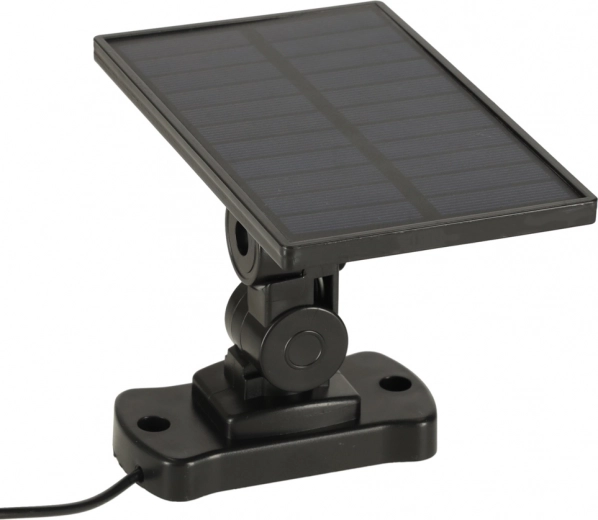 Het losse zonnepaneel met lange kabel (ca. 5 m) zorgt voor efficiënt laden, ook als de lamp in de schaduw is gemonteerd.
