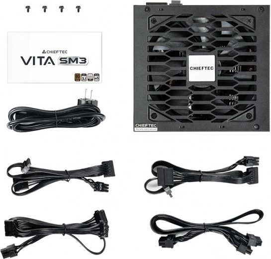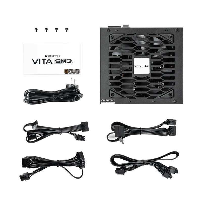 De CHIEFTEC-voeding uit de VITA-serie is ontworpen voor de standaarden ATX 3.1 en PCIe GEN5, met een 80 Plus Bronze efficiëntiecertificering. Het elegante zwarte design biedt niet alleen een stijlvolle uitstraling, maar ook efficiëntie dankzij halfmodulair kabelbeheer en meerniveaubeveiliging.