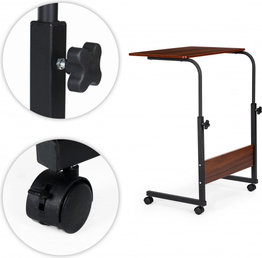 - De verticale poten van het tafeltje zijn voorzien van twee vergrendelbare schroeven die de tafel in de gekozen hoogte vastzetten. Til eenvoudig op, draai de schroeven vast - en de tafel is klaar voor gebruik.<li>