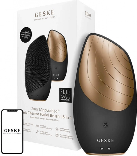 De Geske Sonic 6‑in‑1 gezichtsborstel, door ELLE bekroond als een beauty-innovatie, levert complete huidverzorging. Met SmartSonic-technologie, die tot 18 vibratieniveaus biedt, zorgt hij voor grondige reiniging, toning en massage van de huid, helpt rimpelvorming te voorkomen en opent poriën voor verdere verzorging. Geschikt voor alle huidtypes.