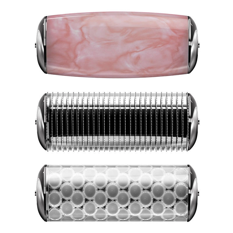 Dankzij het doordachte design is de roller veilig en effectief. Hij is gemaakt van dermatologisch getest siliconen en ondersteunt eenvoudig magnetisch opladen. Drie verwisselbare koppen – met naaldjes, van kwarts en koelend – bieden diverse mogelijkheden voor huidverzorging.