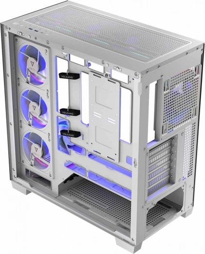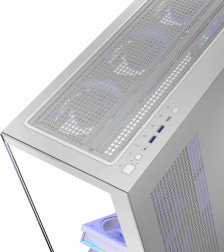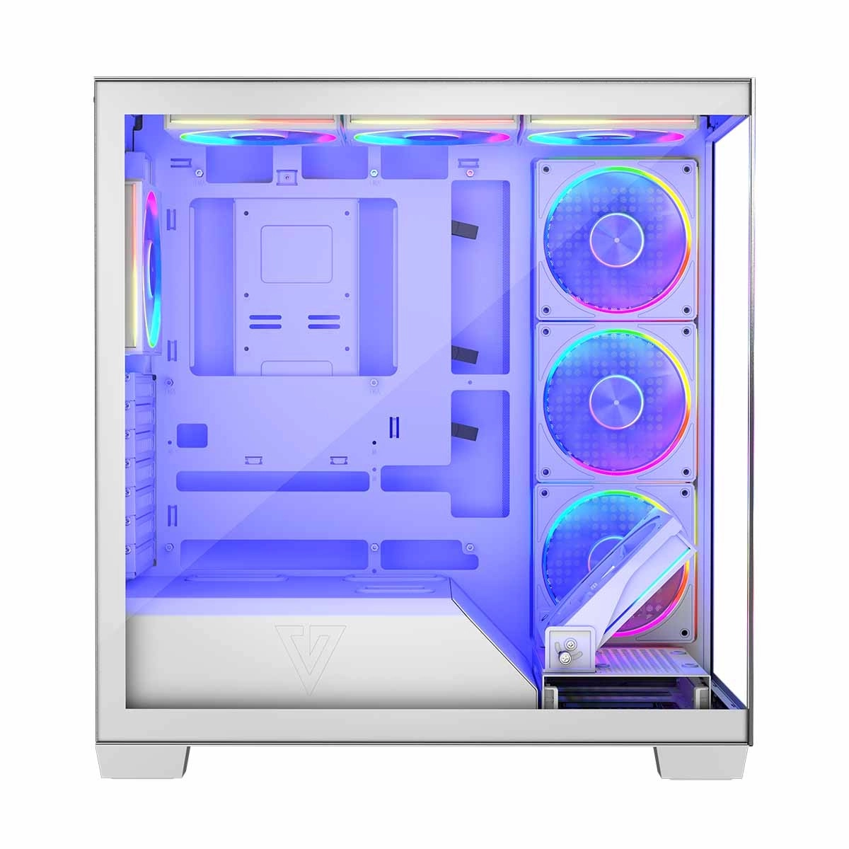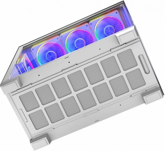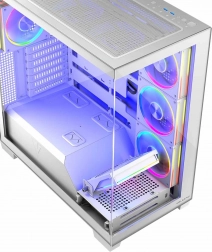 Een belangrijk kenmerk is het efficiënte koelsysteem, dat wordt verzorgd door drie ARGB-ventilatoren aan de zijkant van de behuizing, drie bovenop en twee aan de achterkant. Er is ook een speciaal frame voor de ventilator voor directe koeling van de grafische kaart.